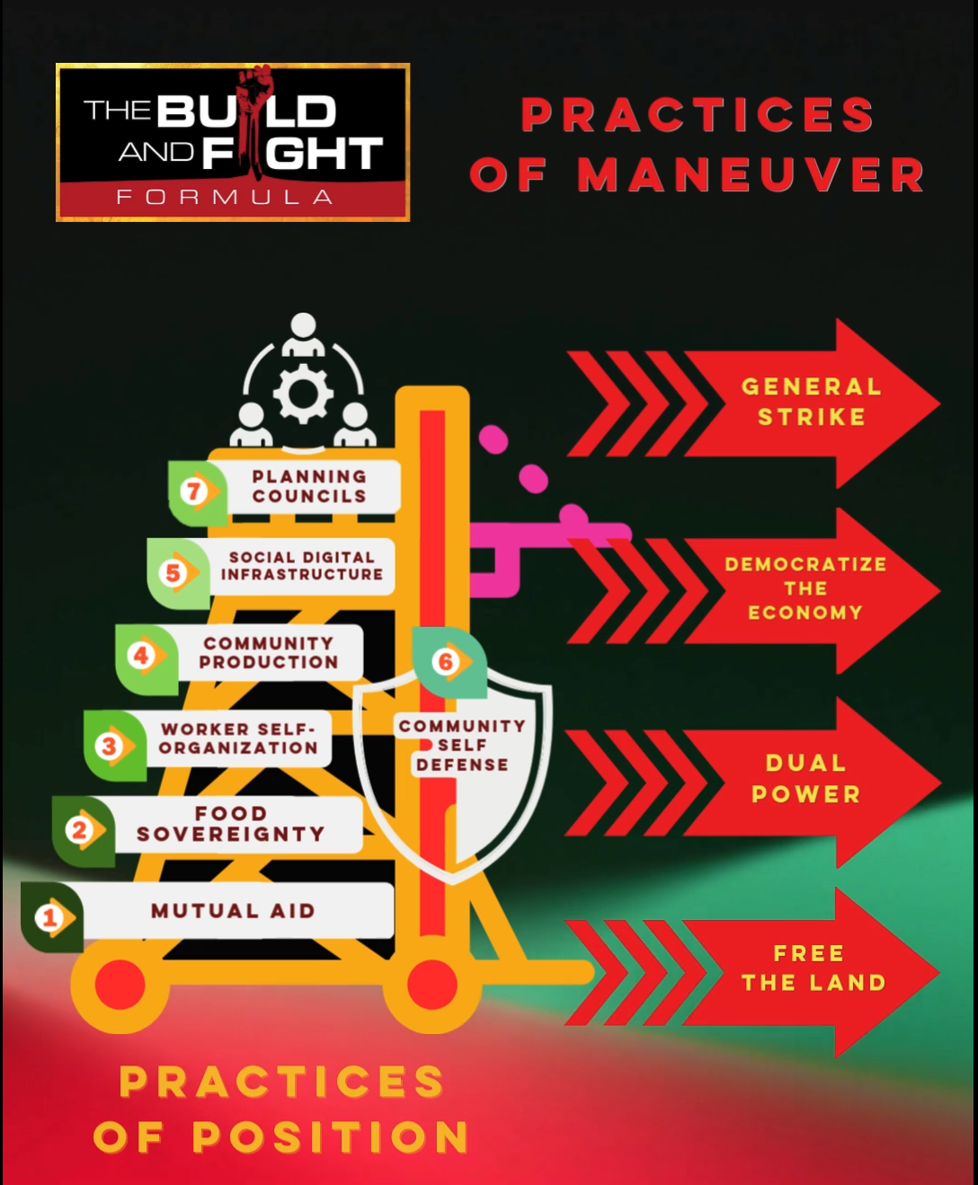 Now, in the real world context we find ourselves in, there are millions of people engaged in the practices of position all throughout the empire, best exemplified by all of the mutual aid projects that have emerged since the Occupy Movement, the countless community gardens that been built over the last 20 years, or all of the Maker Spaces and Fab Labs that have developed over that same period of time, and the numerous self-defense brigades that emerged in virtually all of the cities invaded by ICE this year. Unfortunately, however, these initiatives arenât sufficiently coordinated to exercise maximum power. To this end, in order for the general strike actively being called for to win, we are going to have to get millions more people involved in developing the capacities outlined in the practices of position, and we are going to have to accelerate our capacity to federate and coordinate at scale quickly. Very quickly. And to be clear, it is these practices that will enable us to move past the mere ouster of the Trump regime, and instead put us in position to go for it all.
